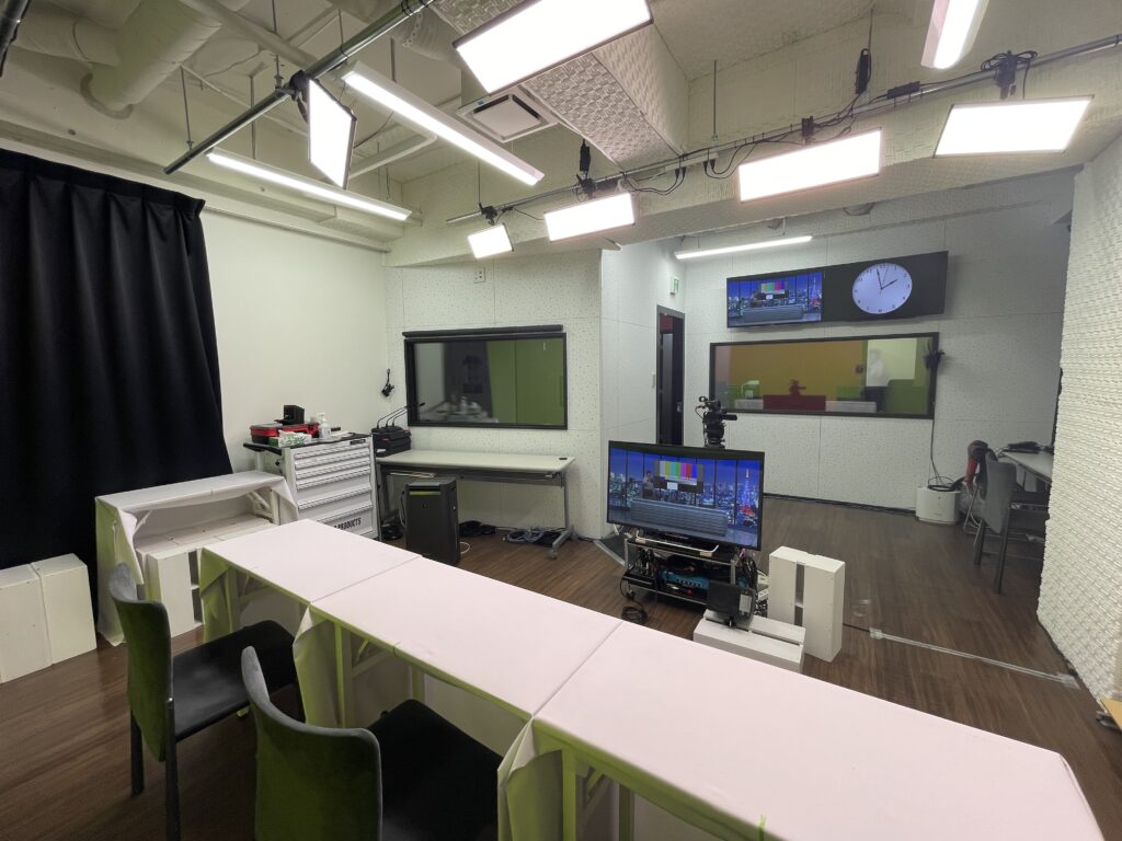 プロダクションスイッチャーである「Tricaster」を主軸設備としてインテグレートされ、スタジオ用に独立した3本のインターネット回線を完備しています。